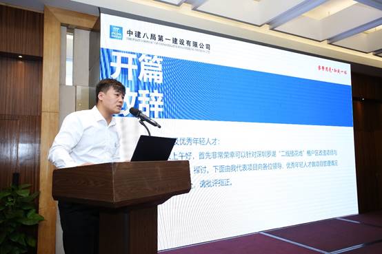 何西謙講話,介紹了公司“841”沐火計劃人才培養體系,點明優秀年輕人才培訓班是在公司項目班子年輕化的情況下,提升項目班子管理能力,充分發揮年輕人才優勢的必然舉措,并希望大家專心學習,將所學知識用于實踐,把所學所思分享給項目其他人員,最后要積極考取一建證書,為未來上崗做好準備。