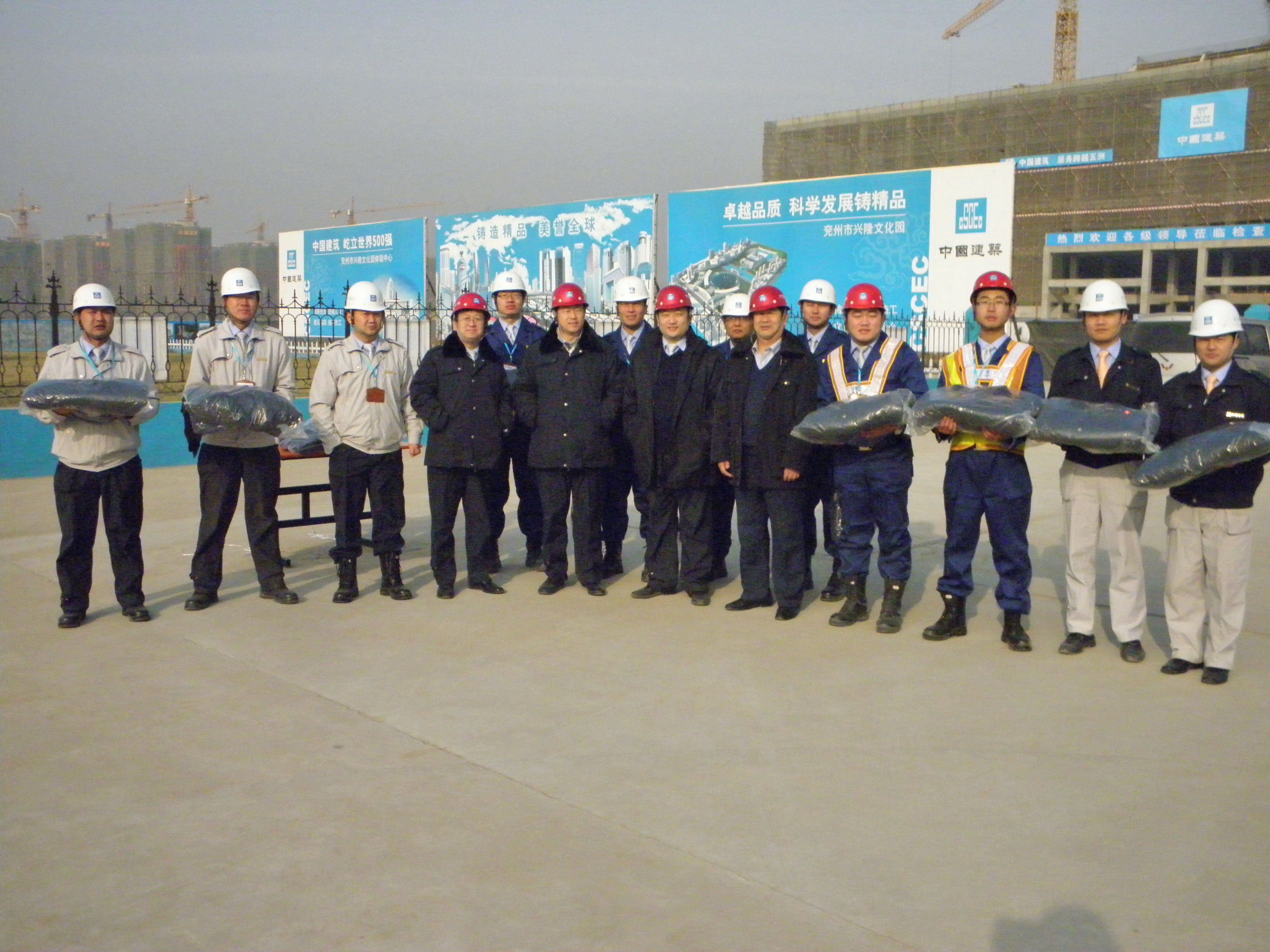2011年12月17日,中建總公司政工部苑丁處長、中建一局谷峰書記蒞臨兗州興隆文化園項目進行CI驗收。