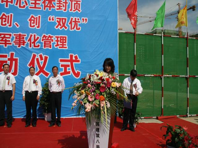 儀式上,青島市建管局副局長孫維民、公司黨委書記許紅、青島市李滄區建設局局長劉波等領導分別為中建八局項目黨員先鋒號、工人先鋒號、青年文明號授旗,并為準軍事化管理項目及效能監察重點工程揭牌。青島市建管局副局長對八局在李滄萬達廣場項目建設中取得的成績及此次活動給予了充分肯定,他指出李滄萬達廣場項目是青島市重點項目,這一工程對樹立城市形象、提高城市品位、改善李滄區商業環境、促進李滄區社會經濟發展具有重要意義。高質量、高水平、高效率地完成這一施工任務,是對施工單位的一次重大考驗。中建八局是一支有著優良傳統的中國建筑“國家隊”,在南征北戰,報效祖國、奉獻社會的建設征程上曾經做出了許多驕人的業績,形成了“特別能吃苦,特別能戰斗,特別能奉獻”的鐵軍精神,希望八局在李滄萬達廣場工程建設中,繼續保持和發揚鐵軍傳統,充分發揮黨員的先鋒模范作用、充分發揮工人階級的主人翁精神,充分發揮青年的生力軍作用,以一流的速度、一流的質量把工程建設成精品工程,安全工程、滿意工程和廉潔工程!