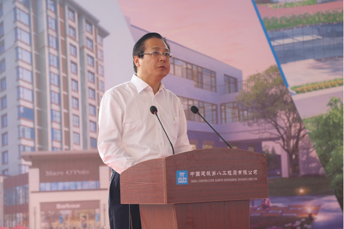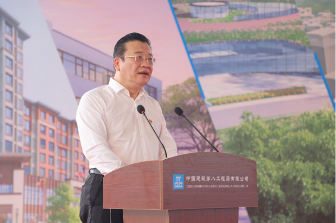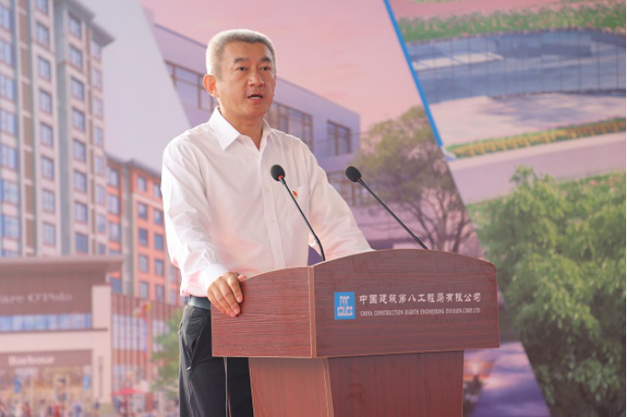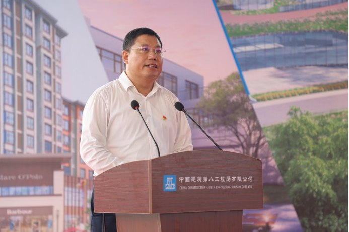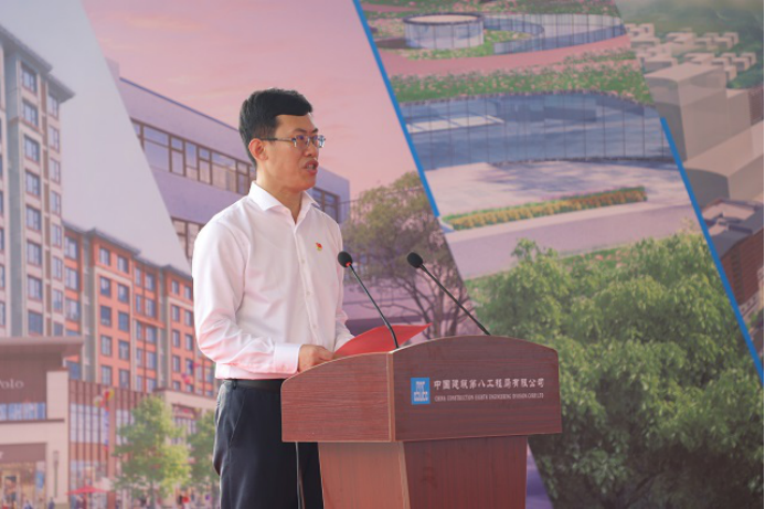 中建八局一公司總經理、黨委副書記齊朋代表中建八局在雄二級單位表態發言,表示將以本次勞動競賽為新起點,以一流的建設速度、一流的安全保障、一流的工程質量,助力雄安新區建設。。