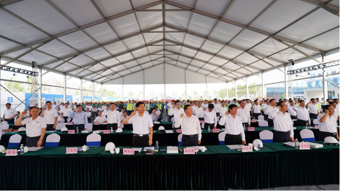 中建八局華北分局總工、雄安分局副局長楊香福帶領與會的中建八局及所屬參建隊伍進行宣誓,鏗鏘誓言表達了為雄安新區建設的決心。