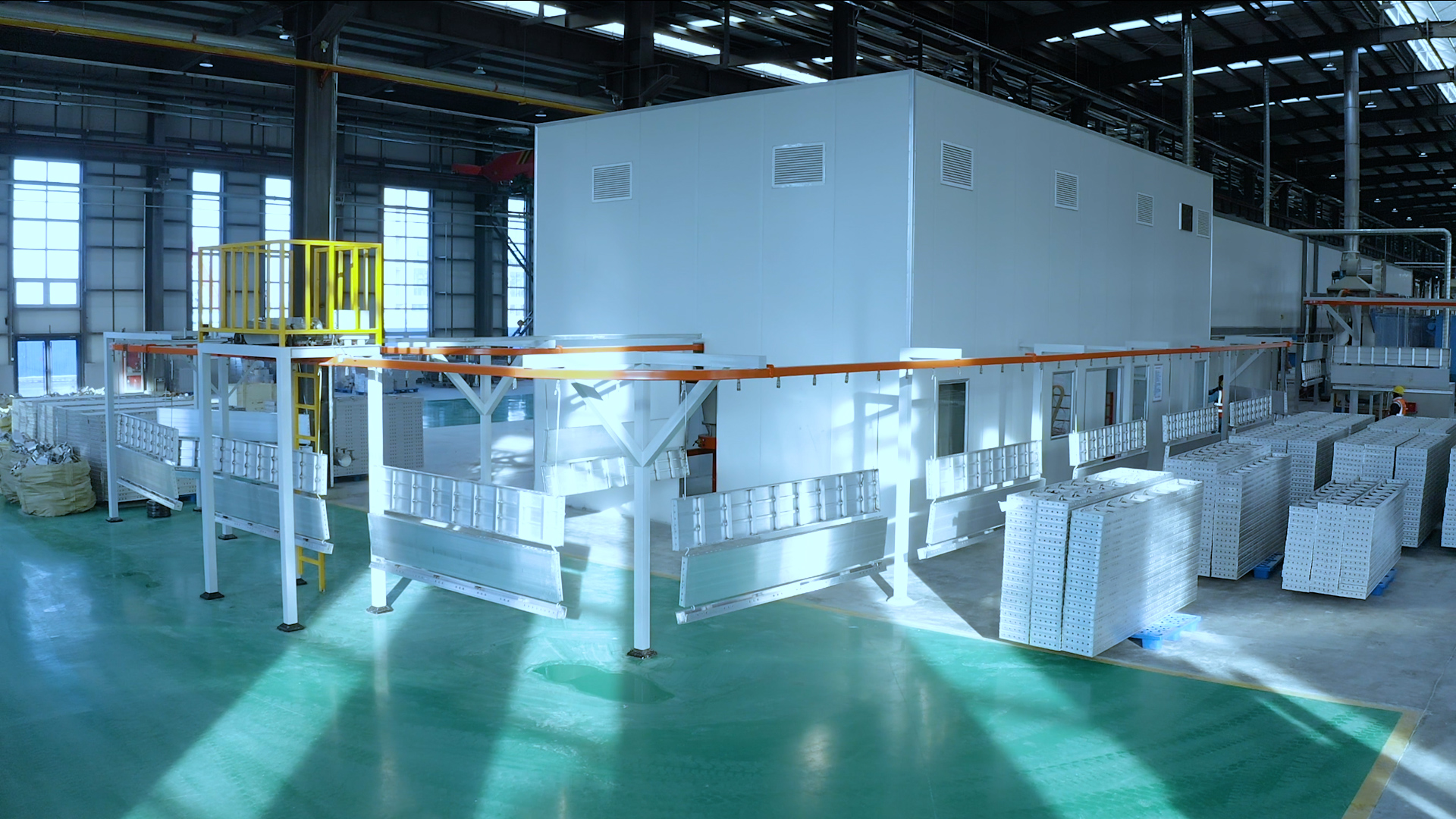 綠色新型模架工廠:工廠建筑面積1.2萬平方米,堆場面積2.2萬平方米,以建筑鋁合金模板體系為主營業務,規劃生產規模為20萬平方米/年。逐步形成集研發、設計、生產、租售、服務為一體的鋁制建材全產業鏈服務。