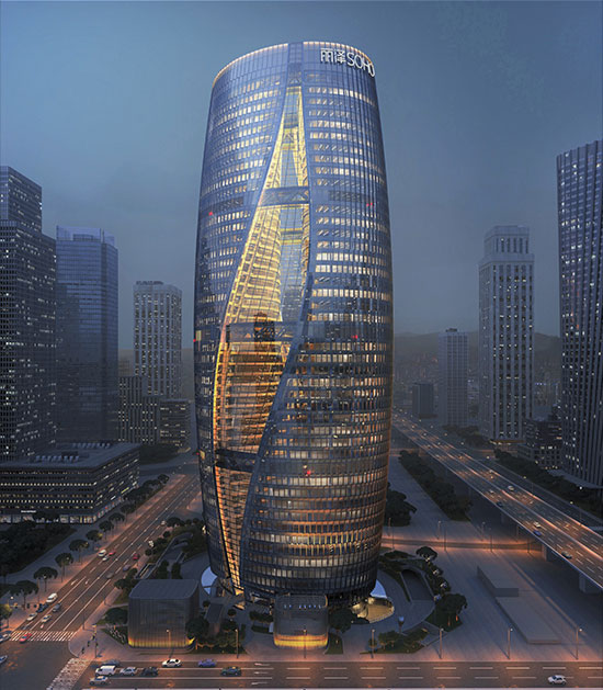 Located in the northeast corner of Lize Financial Business District in Fengtai District of Beijing, it is the final work of the world-famous architect Zaha Hadid in China. The central atrium of nearly 200 meters is world’s greatest. The cataphracted curtain wall is distorted upward. The multi-curvature curved plate edge construction is difficult and the overall shape is extremely complex. Upon completion, it will become a new landmark in southwest Beijing.