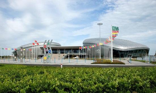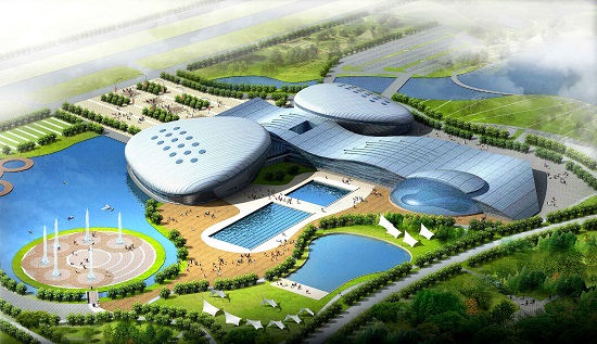 It is built in accordance with the competition standards of world championship. The indoor part includes swimming pools, diving halls, training halls and paddling halls.
