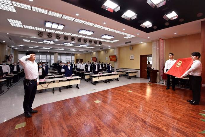 “我志愿加入中國共產主義青年團……為共產主義事業而奮斗!”公司團委副書記賈江凡面向莊嚴的團旗,帶領大家重溫入團誓詞,一起感受初心、堅定使命。活動現場,大家共同觀看了五線戰“疫”MV《逆行,為生命的芳華》。