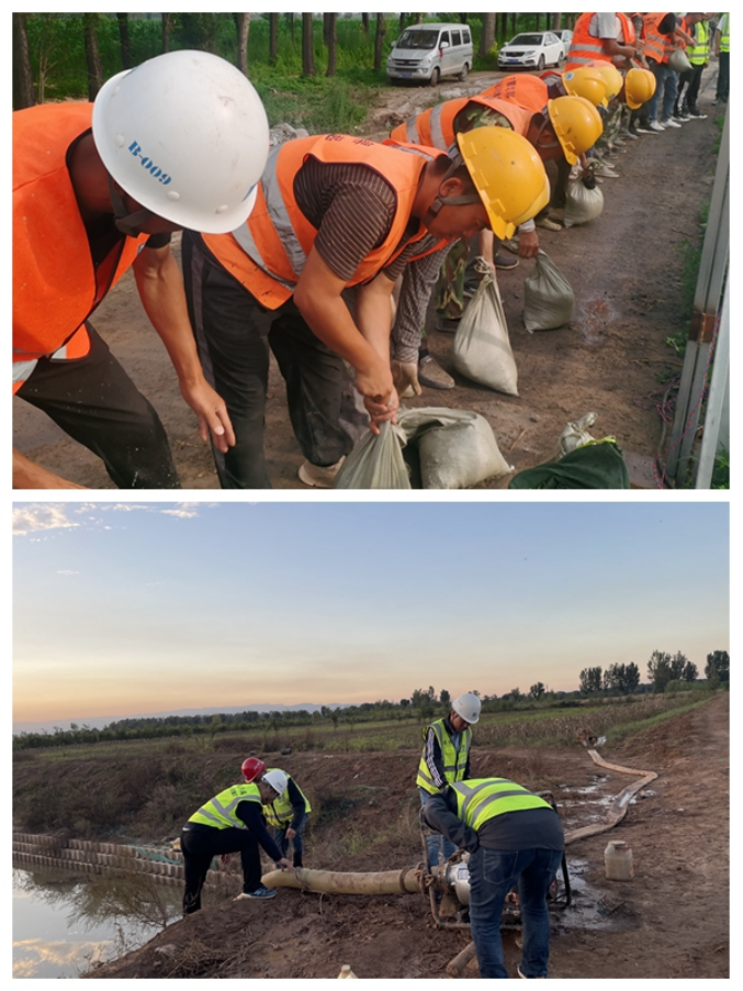 10月10日,連日降雨導致太原文源路生態明渠漫堤,華北公司山西文源路西延項目迅速選派20余人,調集抽水泵3臺,奔赴生態明渠抗汛前線,奮戰3個小時,填裝沙袋200余個。同時,項目還深入周邊村社進行防汛宣傳,排查危舊房屋等隱患,重豎倒塌的信號塔,處理坍塌堵塞路面的路障,保障了周邊群眾出行安全。