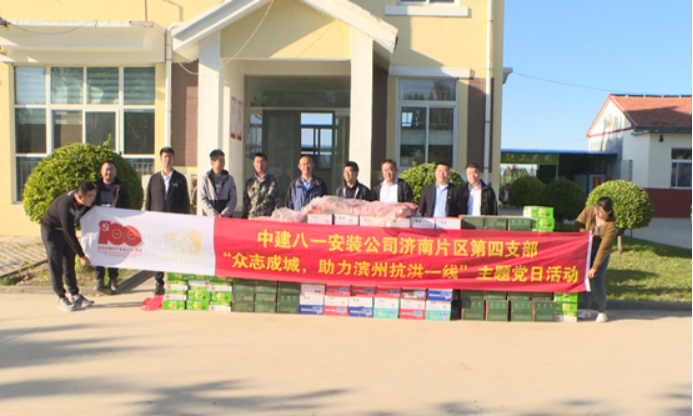 10月11日,安裝公司濟南片區第四黨支部聯合濱州市人民醫院、濟南公司、裝飾公司濱州片區黨支部,組織駐濱項目黨員前往惠民縣黃河防汛前線指揮部開展“眾志成城,助力濱州抗洪一線”主題黨日活動。為戰斗在抗洪一線的干部群眾送上泡面、牛奶、熟食等物資,并向他們表示衷心的感謝。