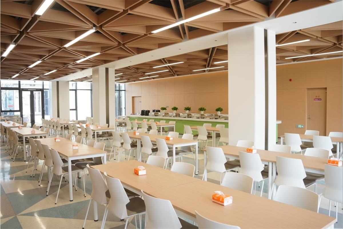 中心設置教學區、共享區與住宿區三大功能分區。其中教學區共有四間教室和一間可容納300人的報告廳。教室可滿足54人、96人、150人教學需求,適應多種教學模式和場景。共享區配有餐廳、書吧、水吧和休息區,供學員放松休息使用;住宿區公寓樓共四層,包含 88 間標準間客房,可容納170余人住宿使用。